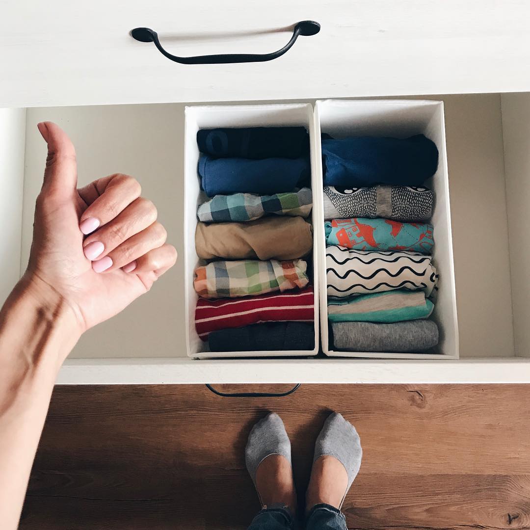 Das ist die Reihenfolge, die funktioniert. Es macht keinen Sinn, Organisatoren und Aufbewahrungsvorrichtungen zu kaufen, bis Sie den Überschuss losgeworden sind und das wahre Volumen Ihrer Sachen zu schätzen wissen.