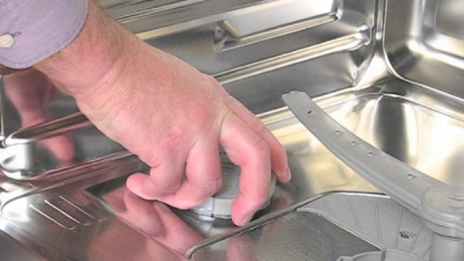 Probleme mit weißen Flecken können durch eine außerplanmäßige Reinigung der Spülmaschine behoben werden. Waschen Sie zuerst den Siebfilter. Da dieser Teil schnell verstopft, sollte er einmal pro Woche gereinigt werden. Der Filter wird mit Spülmittel gereinigt. Als nächstes reinigen Sie die Klingen. Sie nehmen die Wippe oder das Laufrad heraus, waschen sie, reinigen die Löcher mit einem Zahnstocher.