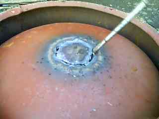 • Eine wärmedämmende Hülle ist erforderlich. Andernfalls kühlt das erhitzte Wasser schnell durch die Außenwände ab. Am besten den Arbeitsbehälter in ein größeres Fass einbauen und den Spalt zwischen den Wänden mit Bauschaum ausblasen.