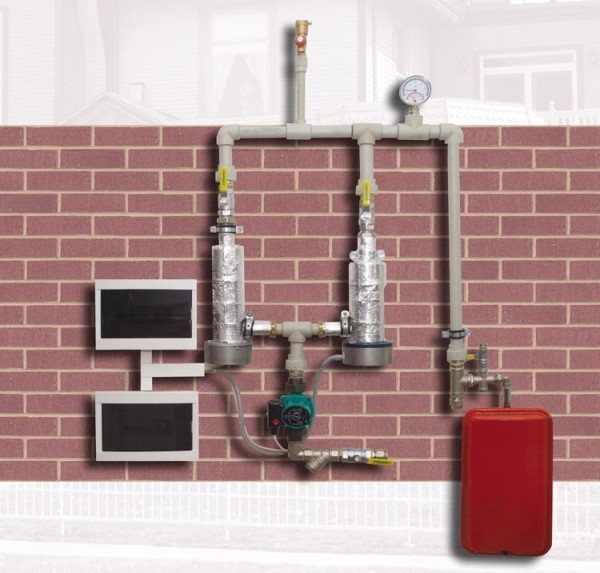 - Zweikreisgeräte haben in der Regel keine Ausrüstung in Form eines Kessels.Darin unterscheiden sie sich von Single-Circuit-Instanzen.