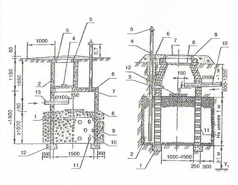 In der Kanalisation des Standorts dienen Schluckbrunnen zur Nachbehandlung von Abwässern aus einem hermetisch abgeschlossenen Reservoir, in dem das Abwasser einer primären biologischen Reinigung unterzogen wird. Der Tank besteht aus Betonringen, Ziegeln oder Bruchsteinen, oder es wird eine fertige Klärgrube verwendet.