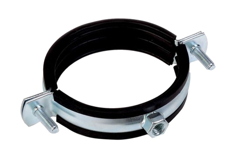 • Schellenkonstruktionen für PVC-Rohre. Die meisten Konstruktionen zeichnen sich durch das Vorhandensein elastischer Dichtungen aus, die einen Teil der Klemmkraft absorbieren, wodurch Risse und Verformungen von PVC vermieden werden. Der Lärm beim Pumpen des Arbeitsmediums wird ebenfalls reduziert.