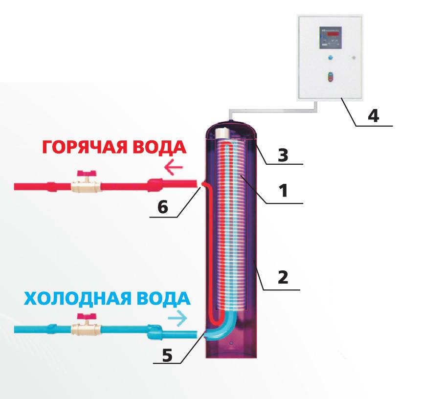 Das Design des Kessels basiert auf elektrischen Induktoren, sie umfassen 2 kurzgeschlossene Wicklungen. Die interne Wicklung wandelt die ankommende elektrische Energie in Wirbelströme um.In der Mitte der Einheit erscheint ein elektrisches Feld, das dann in die zweite Kurve eintritt.