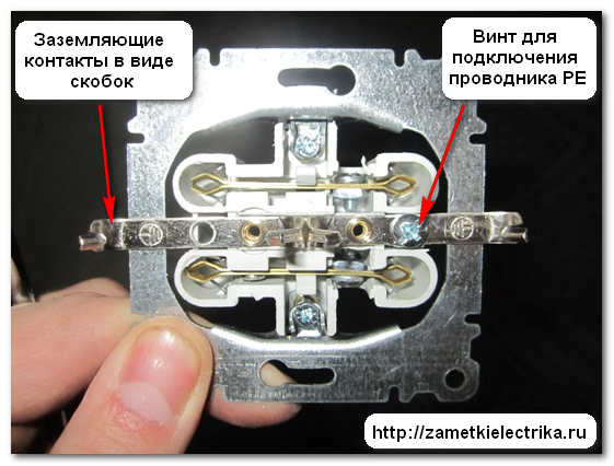 Ein Konstruktionsmerkmal der Steckdose mit Erdung besteht darin, dass sich beim Einschalten die Anschlüsse im Erdungskreis zuerst berühren und dann die Kontakte der Neutral- und Phasendrähte des Steckers in die Steckdose eintreten. Dieses Merkmal wird aus Sicherheitsgründen beachtet, im Falle einer Beschädigung des Mechanismus wird sein Gehäuse geerdet, noch bevor Spannung daran angelegt wird.