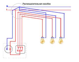Wir dürfen nicht vergessen, dass Null nicht auf den Schalter gerichtet ist. Es geht direkt zu den Lampen. Durch den Kontakt des Gerätes mit drei Tasten wird 1 Phase unterbrochen.
