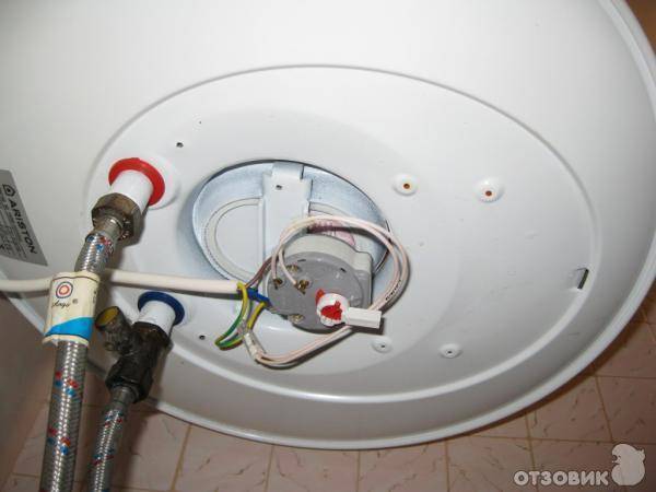 Bei der Herstellung der italienischen Ariston-Warmwasserbereiter werden Kupferlegierungen und eine Chrom-Nickel-Spirale verwendet. Das gebogene Element ist auf einem Messingflansch montiert, was die Wärmeübertragung erhöht. Mit dem Thermostat können Sie das optimale Temperaturniveau einstellen, jedoch nicht höher als 85 ° C Grad. Nach Erreichen der erforderlichen Temperaturanzeigen erfolgt eine automatische Abschaltung, und nachdem das Temperaturniveau um 5 ° C gesunken ist, beginnt der Kessel zu heizen.