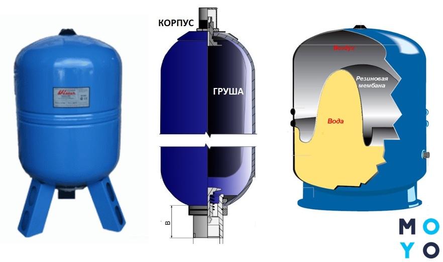 Bohrer empfehlen Gummimembranspeicher als beste Ausdehnungsgefäße. Sie werden in Standardgrößen hergestellt (24, 50, 80, 100 Liter). Je nach Ausführung können Sie die Birne im Akkumulator bei Ausfall oder Beschädigung des Tanks selbst austauschen.