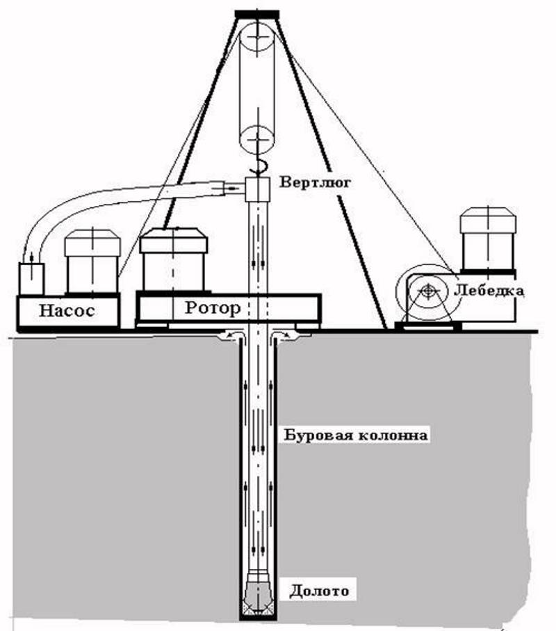 Zur Durchführung der Arbeiten werden der Bohrer selbst, der Bohrturm, die Winde, Gestänge und Mantelrohre benötigt. Der Bohrturm ist beim Graben eines tiefen Brunnens erforderlich, mit Hilfe dieser Konstruktion wird der Bohrer mit Stangen eingetaucht und angehoben.