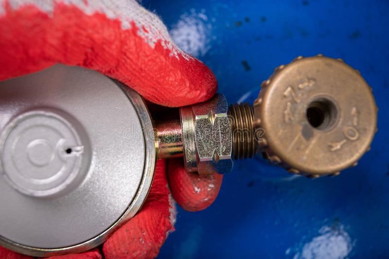 Beim Abwickeln des Ventils kann der Kapitän nicht ohne einen Assistenten auskommen, da einer von ihnen den Zylinder halten und der andere das Ventil mit einem Schlüssel abschrauben muss