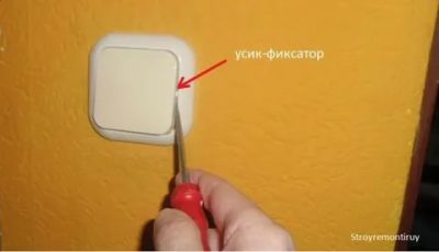 - Klemmung. Diese Art von Schaltern kann spezielle Klemmen in ihrem Design haben. Um den Rahmen zu entfernen, müssen diese Clips einfach gebogen werden. Für mehr Komfort ist es besser, eine Seite und dann die andere zu entfernen.