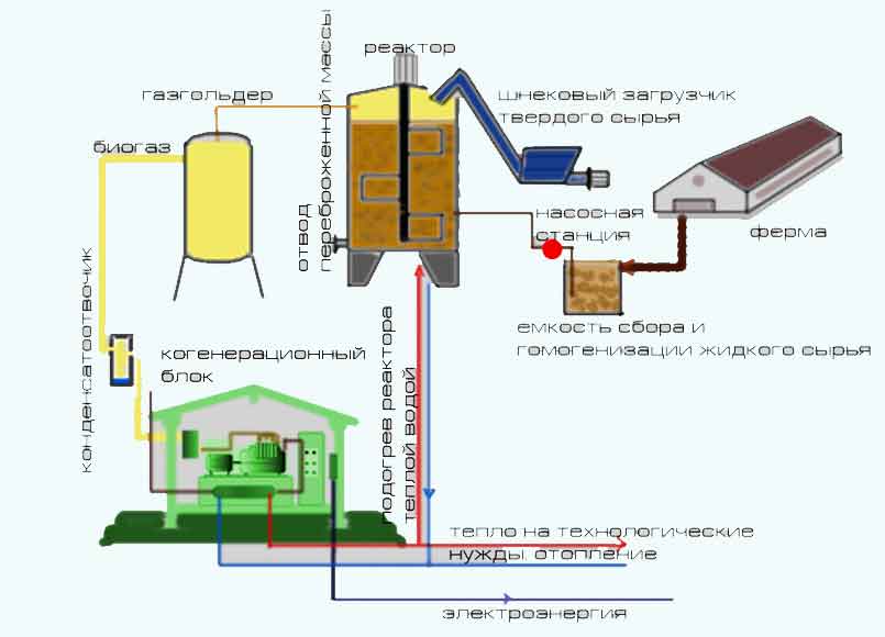 Ein weiterer Hauptgrund für die Notwendigkeit, eine Anlage zu erstellen, ist die Organisation eines vollständigen Kreislaufs der abfallfreien Produktion. Als Rohstoff für das Gerät verwenden wir Gülle oder Kot. Nach der Verarbeitung erhalten wir neues Gas.