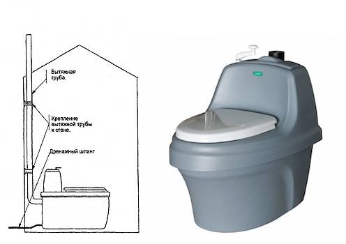 Da die vollständige Verarbeitung einige Zeit in Anspruch nimmt, um den charakteristischen Abfallgeruch zu beseitigen, muss ein Rohr am Torftrockenschrank angebracht werden (es gibt ein Auslassrohr, bei einigen Modellen sind Kunststoffrohre enthalten). Wenn der Schub natürlich ist, ist das Rohr nur gerade, ohne Biegungen und Biegungen, mindestens 2 Meter hoch. Auf Wunsch (wenn nicht genügend natürlicher Luftzug vorhanden ist) können Sie einen Abluftventilator einbauen. Dann sind die Anforderungen an das Rohr nicht so streng.