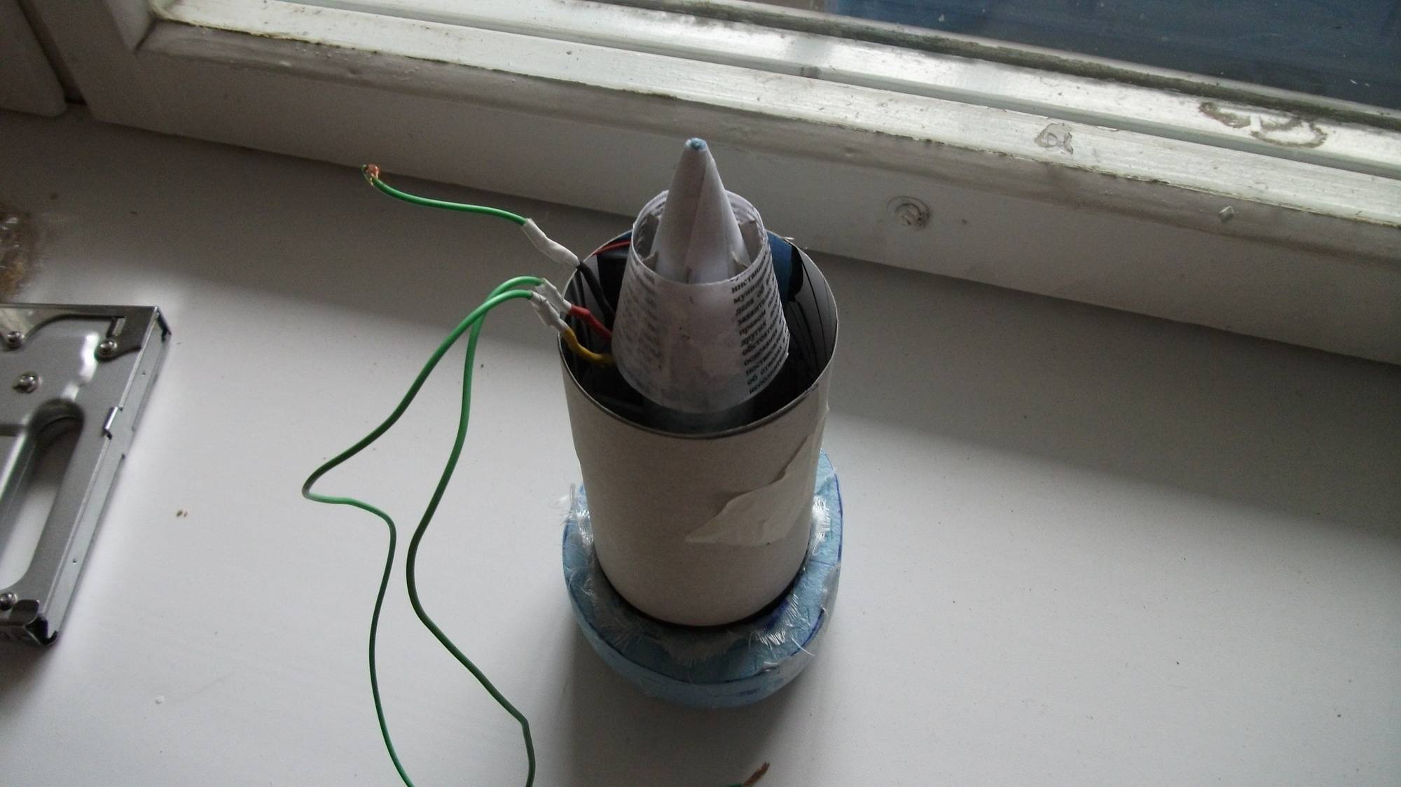 • Nach all dem ist die Struktur miteinander verbunden. Draht ist für den Ständer geeignet. Dies ist vielleicht die einfachste Option. Und für ein so leichtes Gerät kann man es sich nicht besser vorstellen. Sie können das Skelett so biegen, dass die Batterien dort diskret versteckt werden.Oder führen Sie vorsichtig das Stromversorgungskabel zum Motor.