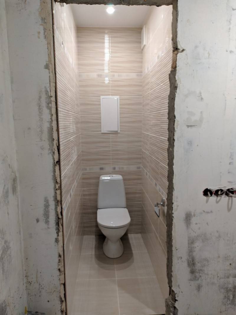 Eine der zeitaufwändigsten Methoden ist die verdeckte Verrohrung im Badezimmer. Aber es macht es möglich, "zwei Fliegen mit einer Klappe zu schlagen": unschöne Kommunikation zu verbergen und das Badezimmer geräumiger zu machen.