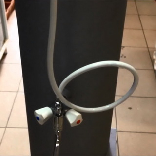 Die Besonderheit seines Geräts ermöglicht es Ihnen, heißes Wasser aus der Säule zu entnehmen und mit kaltem Wasser zu mischen, das direkt an den Mischer angeschlossen ist