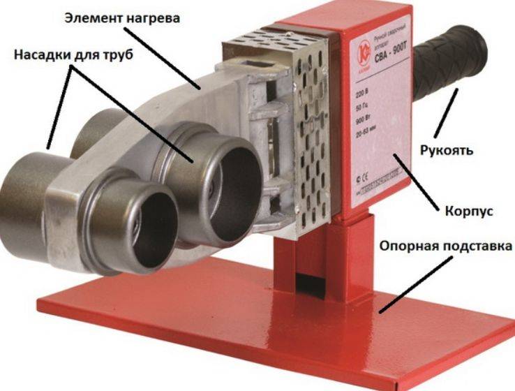 Diese Art des Schweißens basiert auf der Verbindung von Rohrelementen mit speziellen Fittings. Das Werkzeug besteht aus einem Heizelement, einem Düsensatz und einem Ständer zur Befestigung des Geräts.