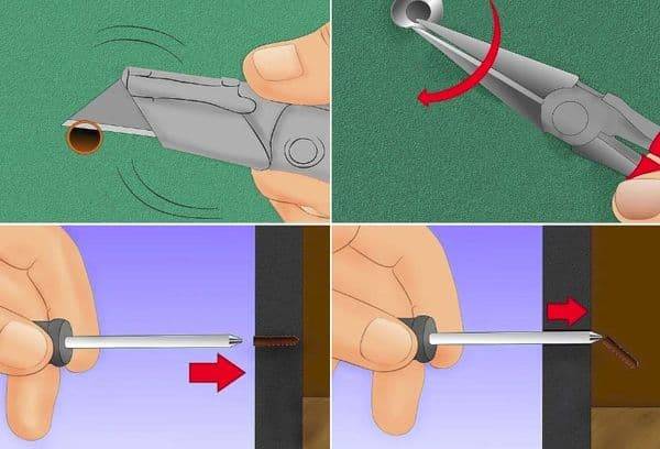 • Entfernen des Dübels mit Zangen, Drahtschneidern - dazu müssen Sie das Werkzeug an einem Kunststoffelement befestigen und dann vorsichtig mit Kraft ziehen und gleichzeitig lösen.