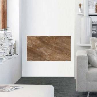 Das beliebteste Design ist die Wandheizung. Es ist in Form eines Bildes gefertigt, das sich perfekt in das Innere des Raumes einfügt. Aber als Heizung ist es weniger effizient als die Decke.