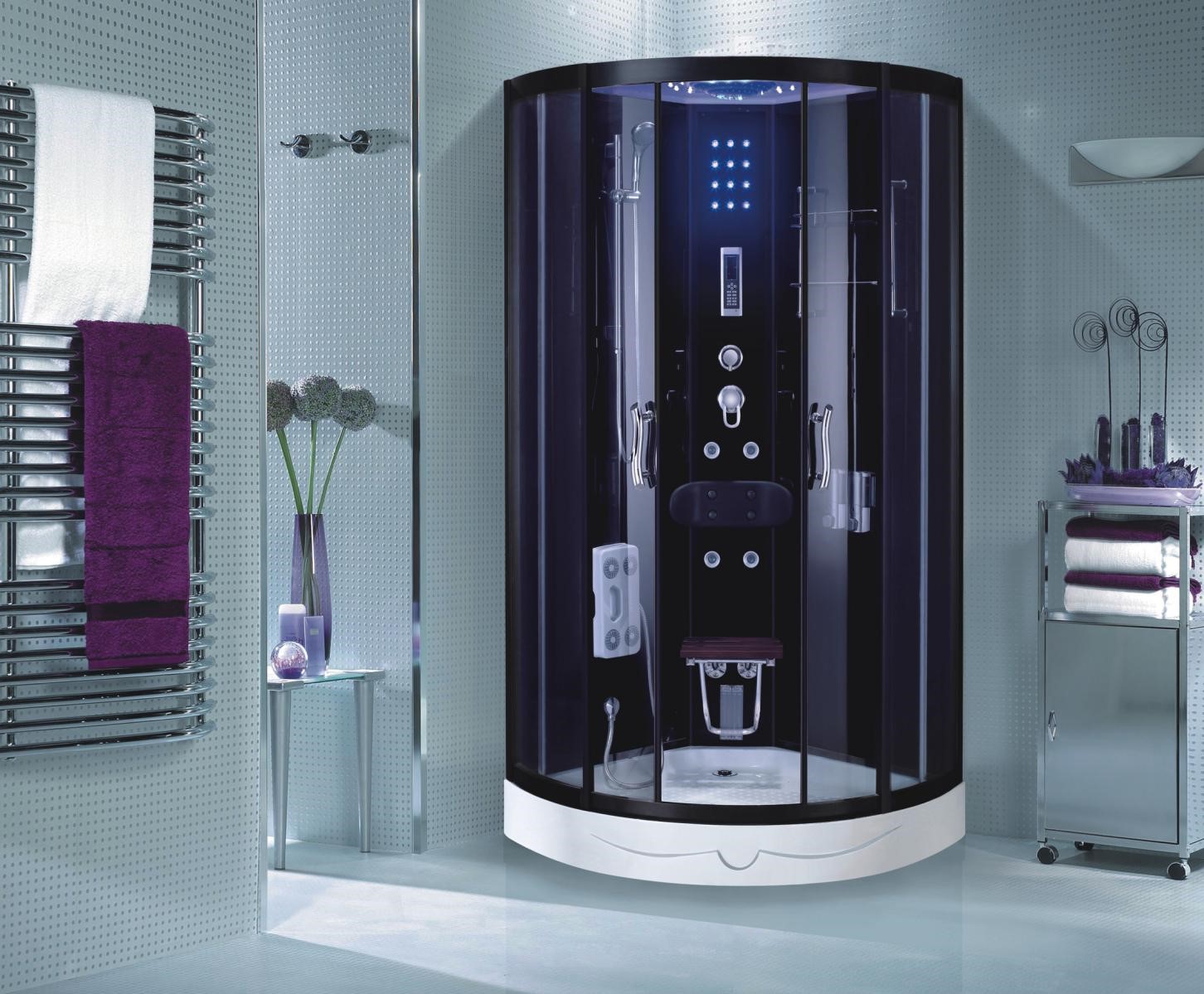 - multifunktional (Tropen-, Kaskaden- oder Charcot-Dusche, Dampfgenerator, Wasserstrahlmodifikation, Ozonierung, Aromatherapie, Hydro- oder Wanderwellenmassage, finnische Sauna / Dampfbadfunktion, Hintergrundbeleuchtung, eingebaute CD, DVD, Radio).