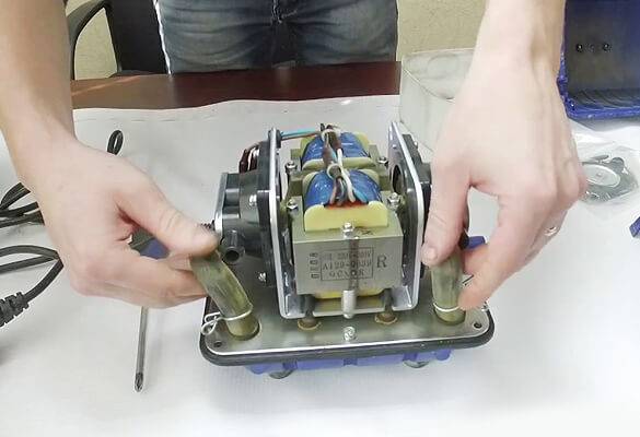 Um die Membran im Kompressor auszutauschen, muss der Körper des Geräts zerlegt, die alten Membranen entfernt und durch neue ersetzt und dann wieder zusammengebaut werden