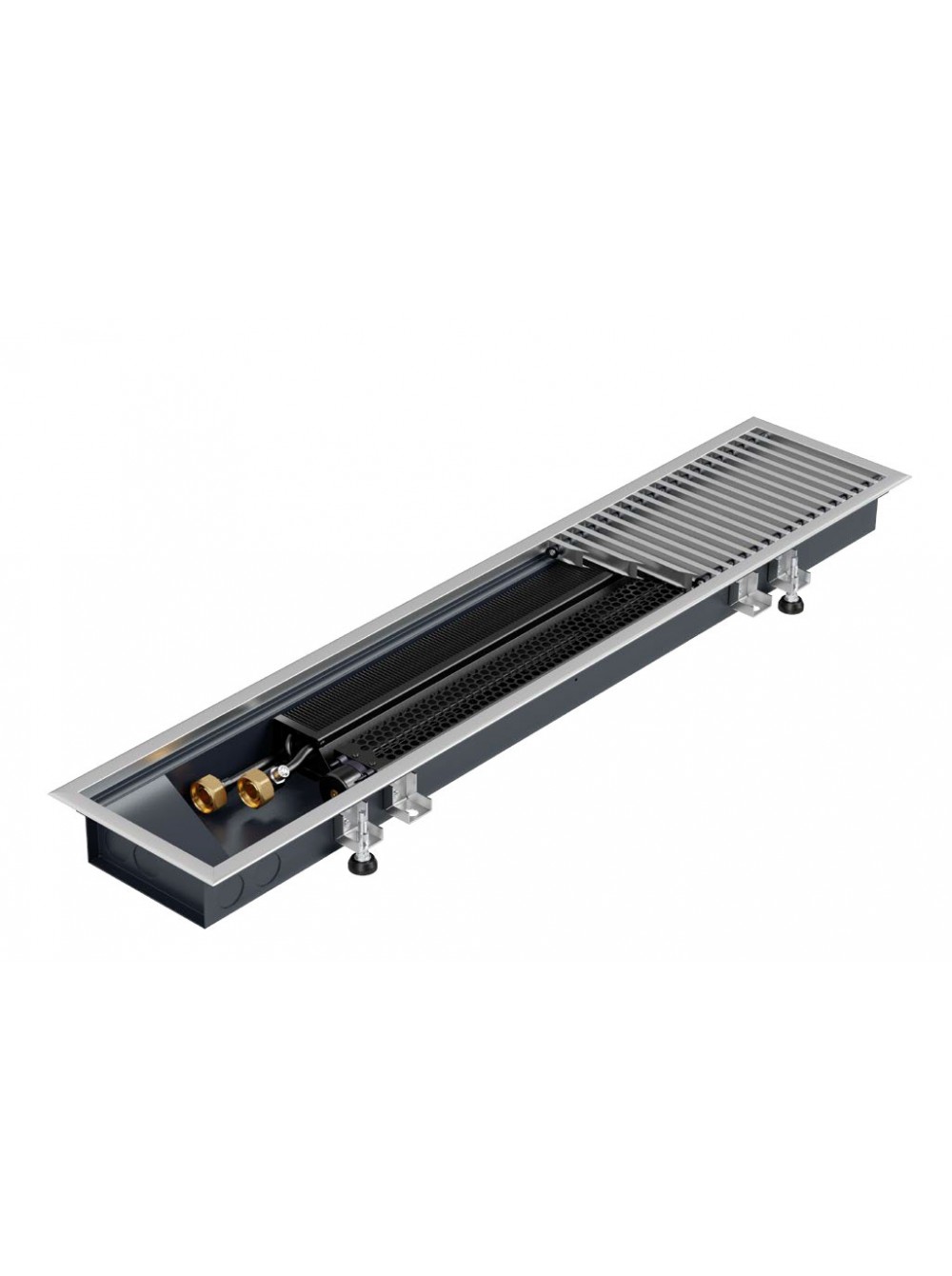 Der Bodenkonvektor ist ein Heizgerät der neuen Generation, das sich perfekt in das Design jedes Interieurs einfügen kann, da dieses Gerät fast unsichtbar ist und keinen Raum verdeckt. Das Hauptmerkmal ist, dass das Produkt in einer speziellen im Boden geschaffenen Nische platziert und oben mit einem dekorativen Gitter verschlossen wird, das bündig mit dem Bodenbelag installiert wird.