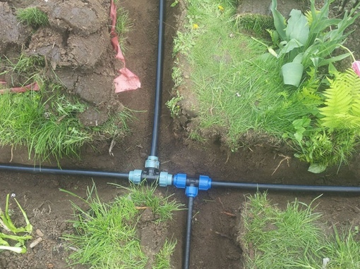 Nach einer vollständigen Überprüfung der Funktionsfähigkeit des Systems und seiner Dichtheit kann die Rohrleitung mit Erde bedeckt werden. Es sei daran erinnert, dass vor Frostbeginn das gesamte Wasser aus dem System abgelassen werden muss.