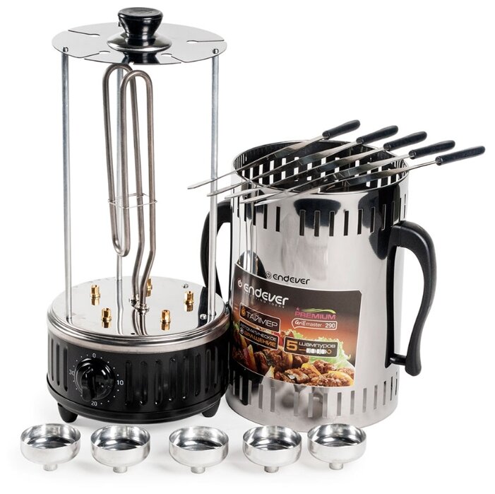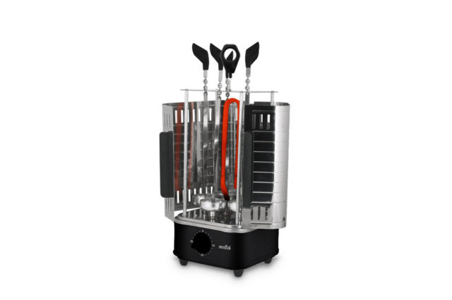 Eines der besten horizontalen Modelle ist der Elektrogrill Sikom MK-22.4E.Dieses Gerät verfügt über 7 funktionierende Spieße gleichzeitig, sodass Sie eine große Menge Fleisch gleichzeitig zubereiten können. Die Spieße drehen sich während des Garvorgangs automatisch und jeder von ihnen hat einen eigenen unabhängigen Antrieb. Die Griffe der Spieße sind aus Holz und langlebig.