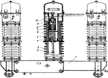 4.1.1. Leistungsschalter VPM-10 sind flüssige Hochspannungsleistungsschalter mit einem geringen Volumen an Lichtbogenlöschflüssigkeit (Transformatoröl).