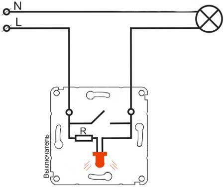 Sie können auch den Pass-Through-Schalter anstelle des üblichen verwenden. In diesem Fall ist das Licht in einer Position eingeschaltet und die Hintergrundbeleuchtung in der zweiten. Die Glühbirne blinkt auch nicht.