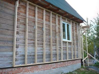 Um das Wärmedämmsystem eines Holzhauses zu installieren, muss ein Rahmen installiert werden
