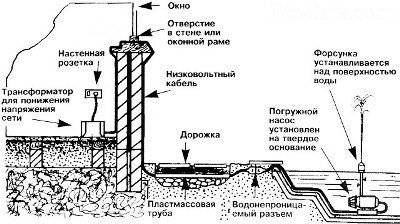 Pumpen für Springbrunnen und Wasserfälle: So wählen Sie die richtige aus und installieren sie selbstAnordnung eines Stausees mit Springbrunnen
