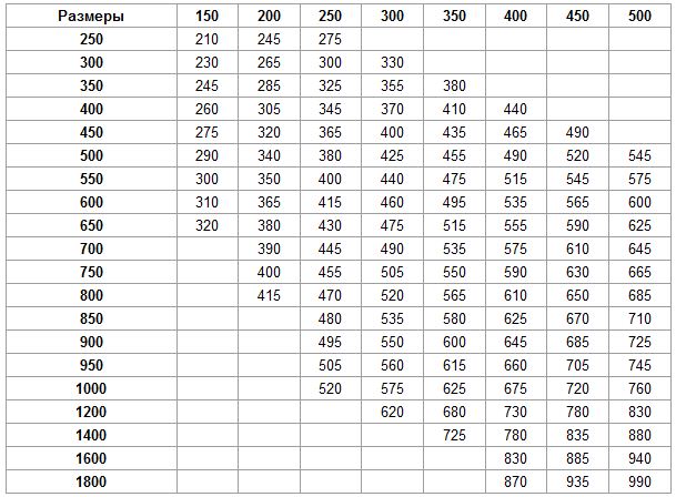 Die resultierende Zahl wird mit den von GOST genehmigten Werksnormen verglichen und die Produkte mit dem nächsten Durchmesser werden ausgewählt.