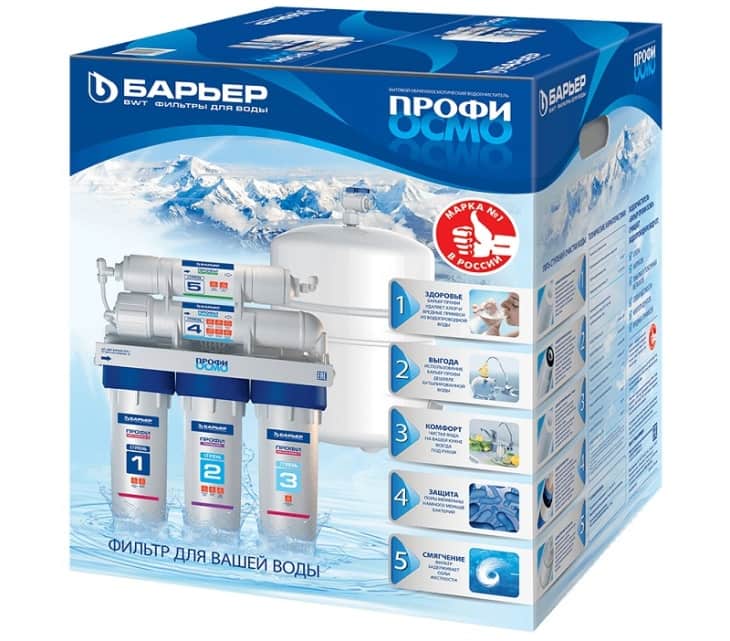 Wie ich bereits sagte, nahmen Aquaphor Morion (8.490 Rubel) und der Filter Barrier Profi Osmo 100 (8.190 Rubel) am Vergleich der Effizienz und Wirtschaftlichkeit von Umkehrosmoseanlagen teil.