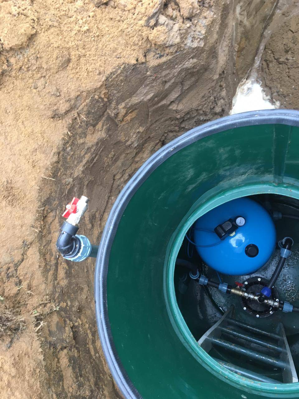 - Die Leistung des montierten Systems und die Dichtheit aller seiner Elemente werden überprüft. Anschließend wird der Brunnen verfüllt.