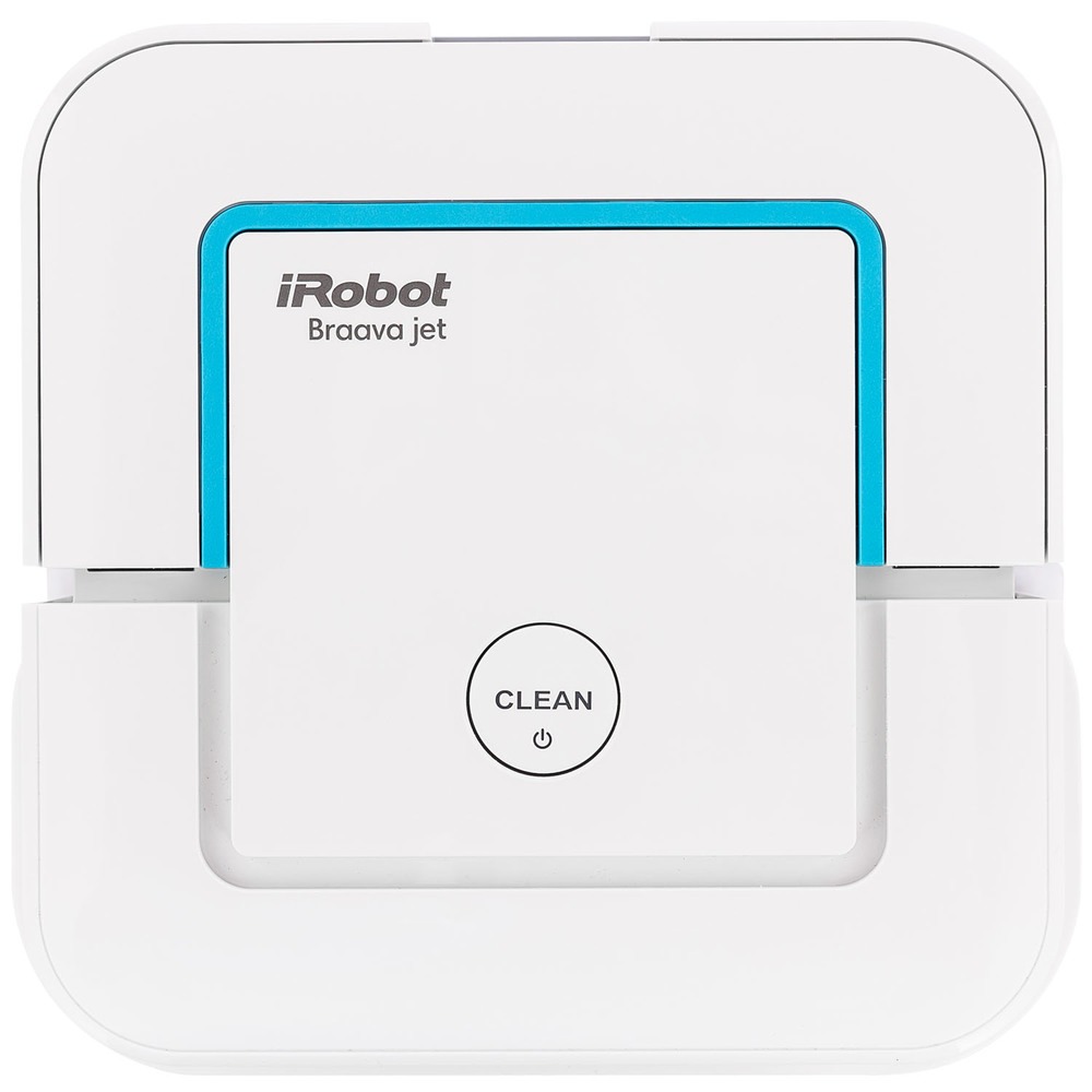 Während des Betriebs zeigt die Maschine mit Hilfe von Kontrollleuchten den aktuellen Status an. Die einzige Steuertaste ermöglicht die manuelle Steuerung des irobot brava jet 240. Der Funktionsumfang der mechanischen Taste ist begrenzt. Eine effektive Steuerung ist durch eine proprietäre Anwendung für gängige mobile Systeme möglich. Der Roboter interagiert mit der Software über Wi-Fi oder Bluetooth.
