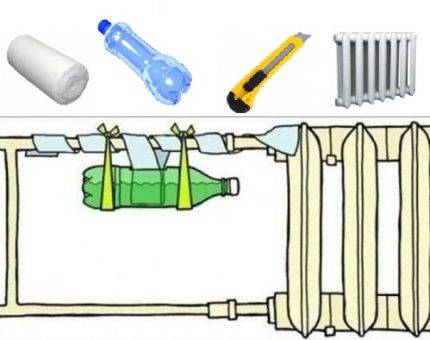 Optimale Raumtemperatur in verschiedenen RäumenEine Alternative zu einem komplexen Gerät kann ein elementares Gerät aus einer Plastikflasche und einem Verband sein (+)