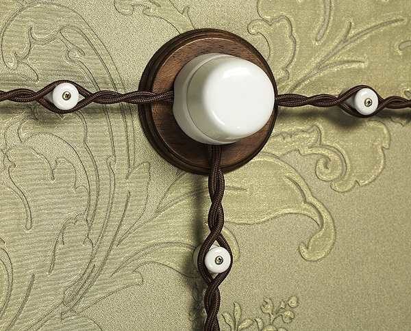 Früher gab es keine speziellen Anschlussdosen und daher wurden alle Verdrahtungspunkte auf keramischen oder teureren Porzellan-Isolierrollen ausgeführt. Um zu verhindern, dass einzelne Fasern sichtbar sind, versteckten die Handwerker sie unter einem speziellen Geflecht.