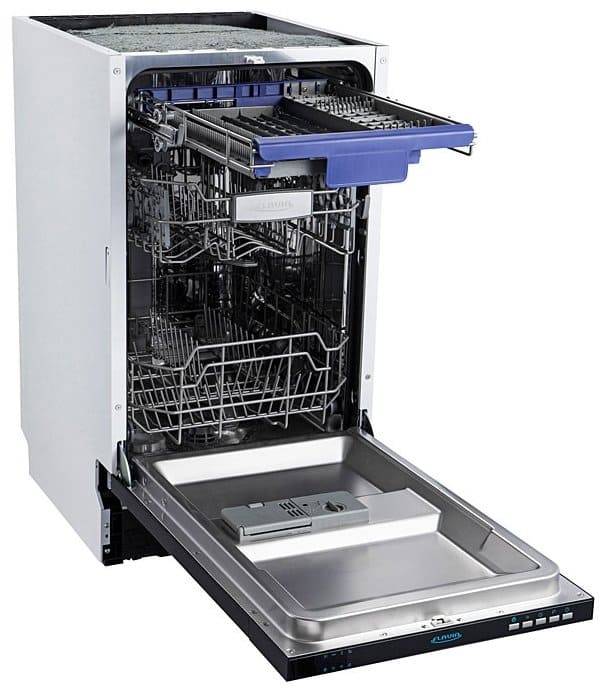 Kompakter Einbau-Geschirrspüler mit einem Gewicht von 26 kg. Ausgelegt für 6 Geschirrsets. Es hat einen minimalen Wasserverbrauch - nur 6 Liter. Ausgestattet mit einem elektronischen Steuersystem mit Display. Die Energieeffizienzklasse der Maschine ist A+, 6 Betriebsarten. Ausgestattet mit Anti-Leck-Funktion und akustischem Alarm. Größe: 55x52x44 cm, Kosten - ab 20.000 Rubel.Flavia BI 45 Geschirrspüler: die besten Modelle, Funktionen + Besitzerbewertungen