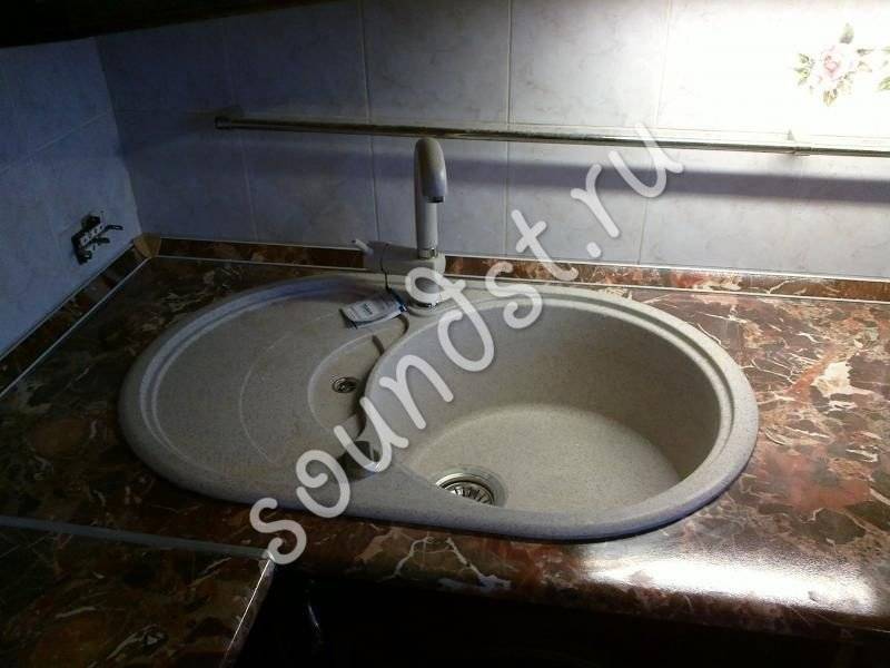 Bei der Überkopf-Methode wird die Spüle auf dem Tisch installiert und mit speziellen Clips befestigt. Bei der Einsteckmethode wird ein Loch geschnitten, in das ein Granitprodukt eingesetzt wird. Bei der letzteren Methode sind Arbeitsplatte und Spüle eins.