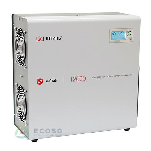 Der Doppelumwandlungsstabilisator ist nicht für eine große Last ausgelegt. Die Leistung des Gerätes beträgt 500 Watt.Vertikal an der Wand, hat einen großen Eingangsspannungsbereich - von 90 bis 310 V. Geeignet zum Anschließen teurer oder empfindlicher Geräte.