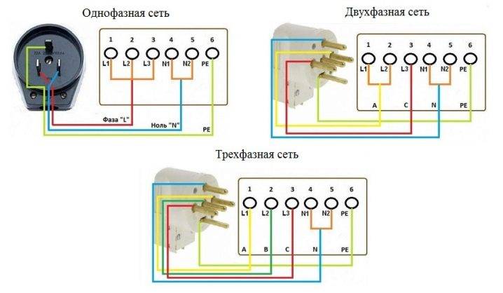 Am gebräuchlichsten ist ein 1-phasiges Anschlussschema, daher werden wir es zuerst betrachten. Die Stecker haben dann 3 Ausgänge, wobei der Kontakt ein Phasenkabel ist, ein anderer Null ist und der verbleibende ein Schutz ist.