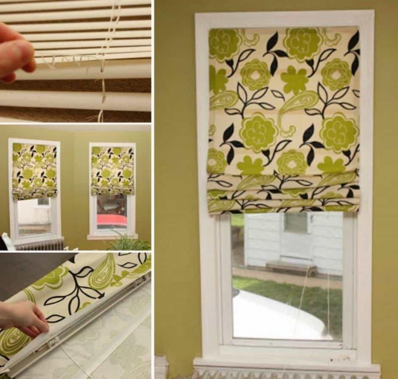 Wenn die Herstellung von selbstgemachten Jalousien beim ersten Mal schwierig ist, beginnen Sie mit der Dekoration von Standard-Massenproduktionsmodellen. Langweilige weiße Teller können mit einem Film, einer Tapete mit einem beliebigen Bild „verkleidet“ werden.