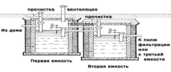 Um eine normale Abwasserbehandlung zu gewährleisten, ist es wünschenswert, zwei Kammern in der Klärgrube zu verwenden: In der ersten setzen sich schwere Substanzen am Boden ab und in der zweiten setzt sich geklärtes Wasser ab, bevor es in den Boden eingeleitet wird.