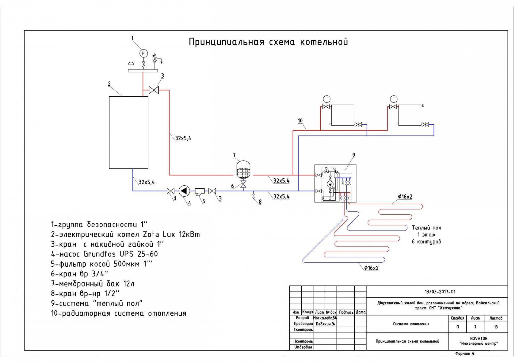 Elektrokessel, bei denen Wasser durch Heizelemente, einen Induktionskern oder durch Elektrolyse von Salzen erhitzt wird, sind ebenfalls direkt an die Heizung angeschlossen. Zur Aufrechterhaltung der Temperatur und Sicherheit befindet sich die Automatisierung im Schaltschrank, der gemäß dem obigen Schaltplan an das Netzwerk angeschlossen ist. Weitere Anschlussmöglichkeiten sind in einer gesonderten Publikation zur Installation von Elektroheizkesseln dargestellt.