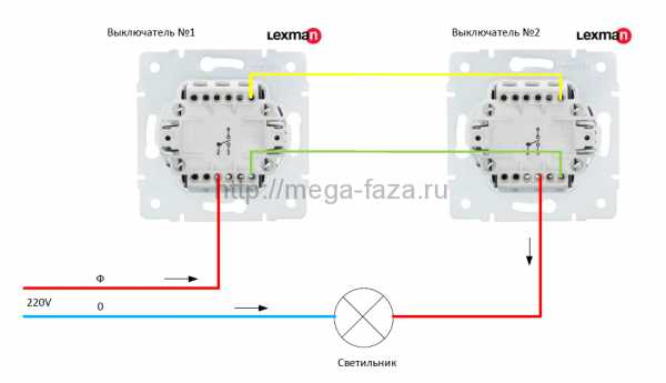 Das Gegenteil ist auch wahr. Zweifach-Durchgangsschalter: Anschlussplan Um die Beleuchtung von zwei Lampen oder Lampengruppen von einem Schalter aus von mehreren Stellen aus zu steuern, gibt es Zweifach-Durchgangsschalter.