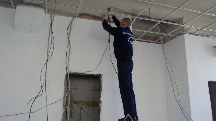 Die Installation sollte mit Steckdosen, Schaltern, Schalttafeln und Anschlussdosen beginnen. Alle installierten Geräte sind durch in Kästen verlegte Kabel verbunden. Überschüssige Kabelkanäle werden mit einer Bügelsäge abgeschnitten.