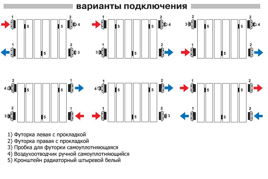Nützliche Informationen: Wenn die Batterie, die in einem Einwegschema an das Heizsystem angeschlossen ist, eine große Anzahl von Abschnitten aufweist, wird die Effizienz ihrer Wärmeübertragung aufgrund der schwachen Erwärmung ihrer entfernten Abschnitte erheblich verringert. Es ist besser darauf zu achten, dass die Anzahl der Abschnitte 12 Stück nicht überschreitet. oder verwenden Sie eine andere Verbindungsmethode.