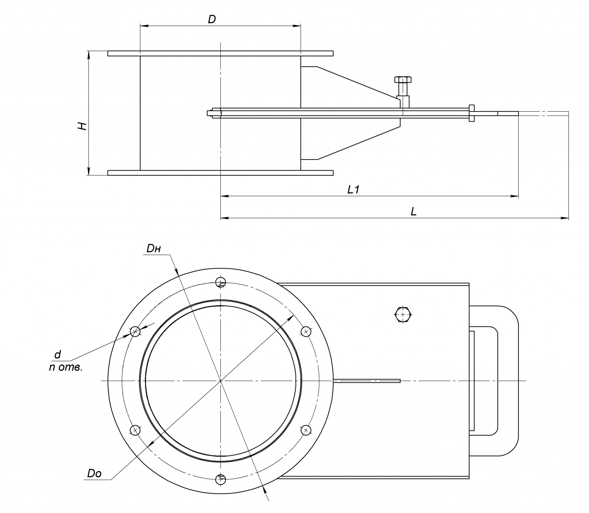 Dieser Ventiltyp wird streng horizontal eingebaut. Um die Zugkraft im Schornstein zu ändern, reicht es aus, den Dämpfer in die gewünschte Richtung zu bewegen und den Querschnitt für das Rohr zu vergrößern oder umgekehrt zu verringern.