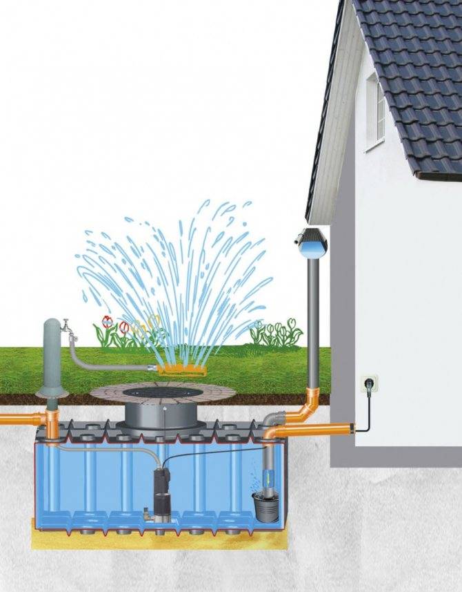 Die Reinheit und natürliche Weichheit von Regenwasser machen es für den Hausgebrauch, die Bewässerung und manchmal das Füllen des Heizsystems geeignet. Dank eines großen Vorratstanks und einer Pumpe können Sie während der Entleerung des Brunnens immer eine Reservewasserquelle verwenden, die relevant ist.