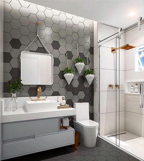 - Ideen für die Gestaltung eines originellen modernen Badezimmerinterieurs